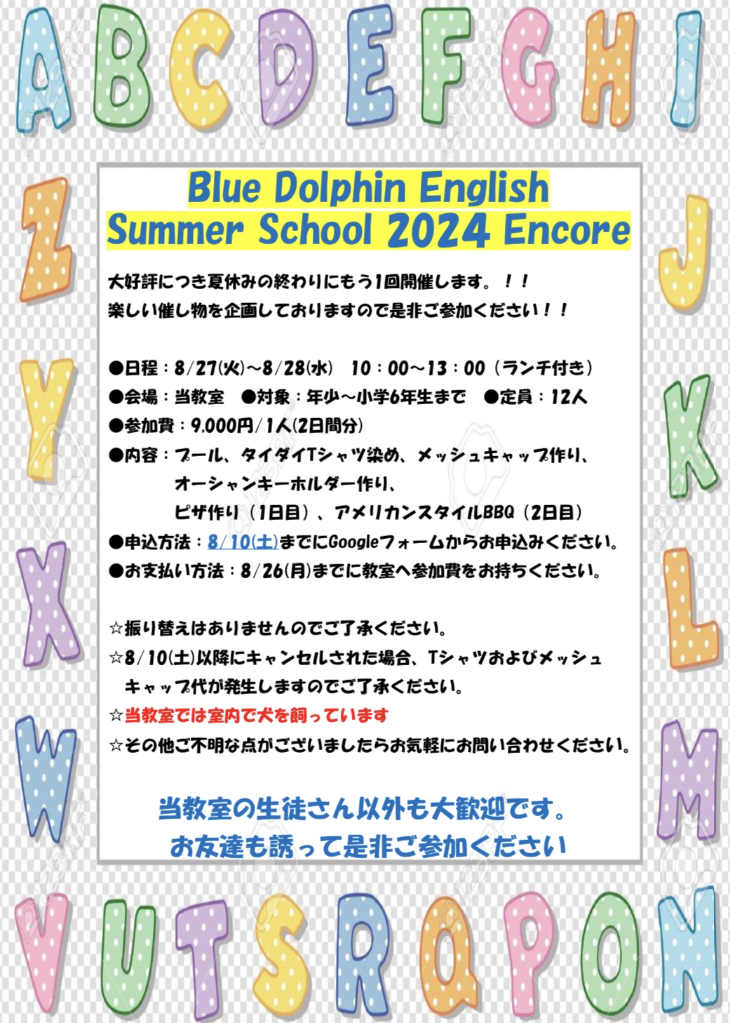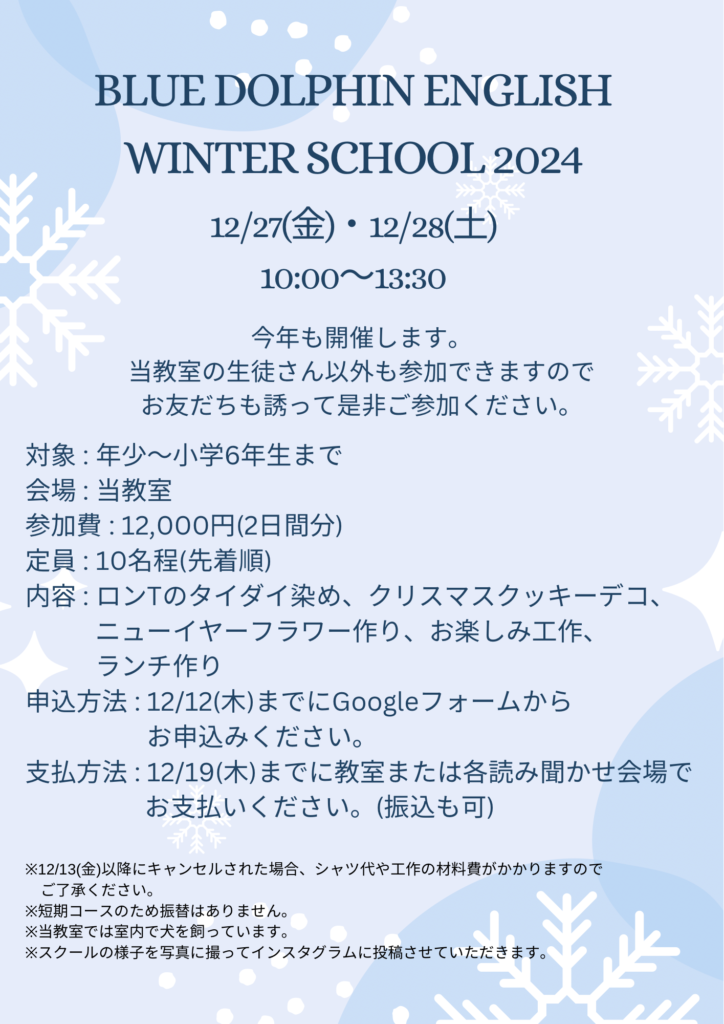 ⚠️イベント日近くになりましたら当教室の生徒さん以外へは当日についてのお知らせをEメールでお送りします。迷惑メールボックスに入ってしまう場合がございますのでご注意ください。